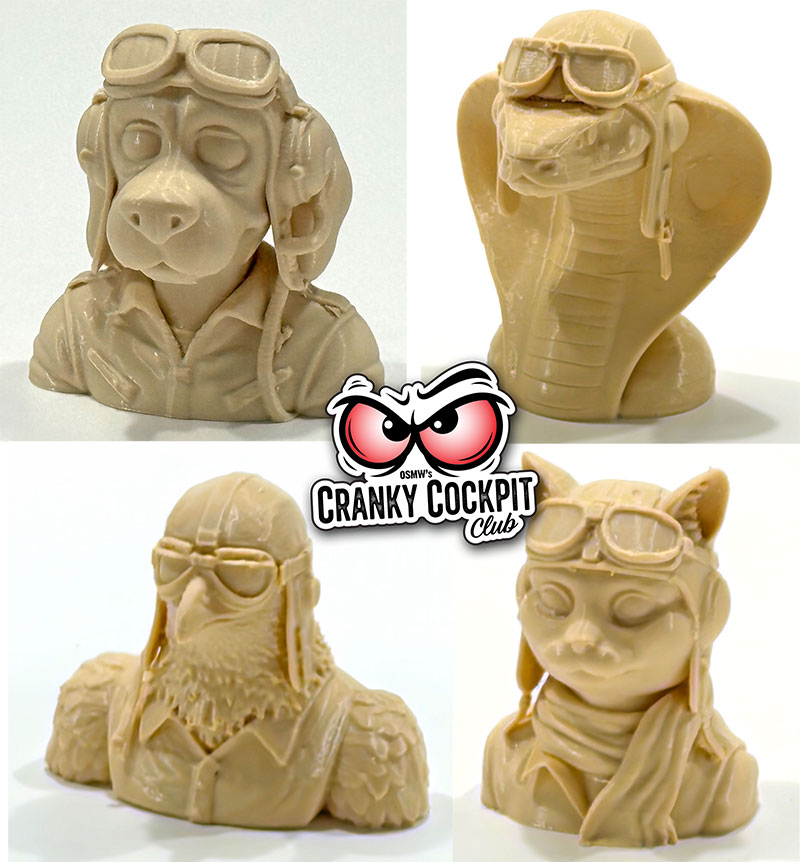 From gritty realism to goofy charm (why yes, that is a dog with goggles), our exclusive line-up has everything from monsters to classic airmen. We 3D-print these ourselves in-house, and each one is made from flesh-toned, UV-resistant PETG filament, built to handle sun, wind, and wild aerial adventures. We print them in ultra-thin layers to lock in those crisp details, and keep them feather-light thanks to using minimal infill.