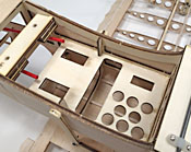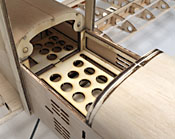 Up front, we’ve designed a hatch that covers the battery/tank compartment. This area will easily handle 3s packs and 6-ounce tanks.